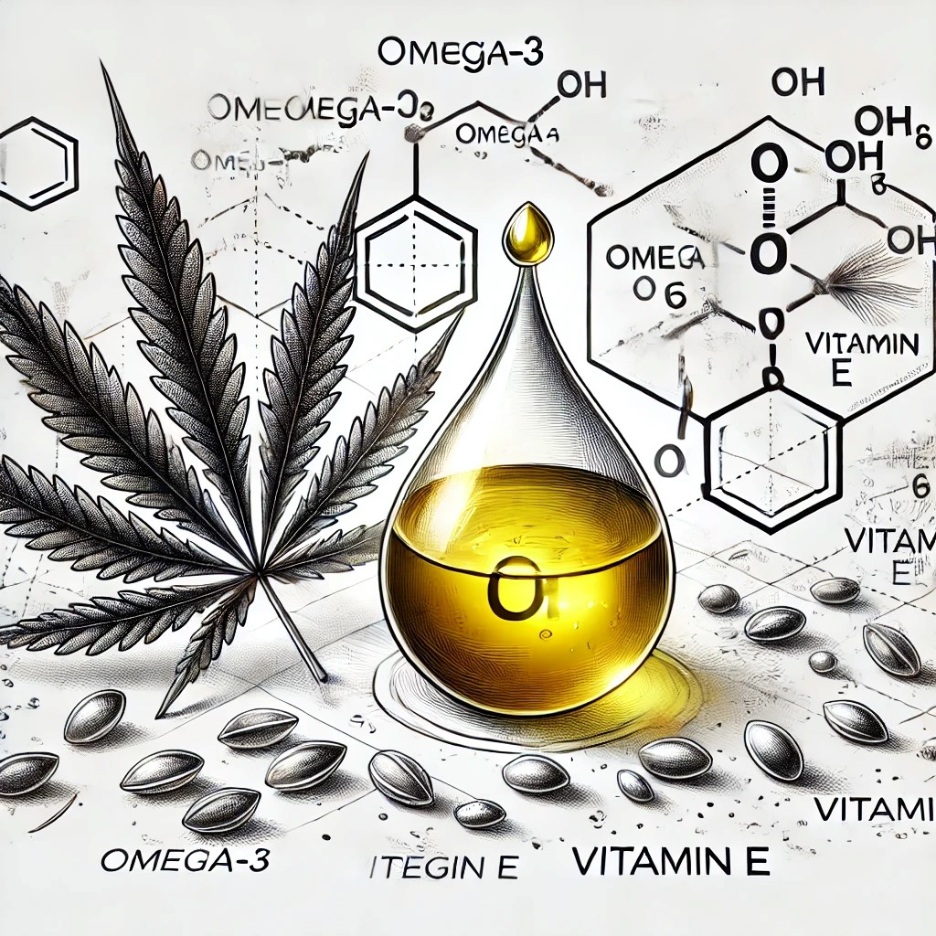 대마종자유는 건강에 이로운 불포화지방산과 항산화 성분이 풍부한 식물성 오일임.