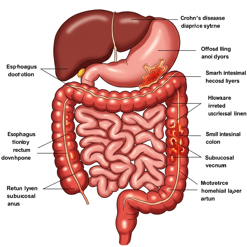 크론병(Crohn's Disease)은 소화기관 전체, 특히 소장과 대장에 만성적인 염증이 생기는 염증성 장질환(IBD)입니다.