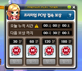 프리미엄 pc방을 이용하면 경험치 관련 혜택 및 일정 시간당 추가 아이템 지급 등 각종 혜택을 받을 수 있습니다. 뿐만 아니라 시간별로 마일리지를 보상으로 받을 수 있습니다. 마일리지 때문에 pc방을 가실 일은 없겠지만 게임을 즐기러 방문하신다면 마일리지도 챙겨주시면 좋을것 같네요.