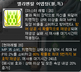 또한 불독과 썬콜 직업에 있는 엘리멘탈 어뎁팅 효과로도 흡혈 패턴을 피할 수 있습니다. 이 스킬은 의지류 스킬과는 다르게 미리 사용해둘 수 있습니다. 엘리멘탈 어뎁팅 스킬을 미리 써두면 하드 힐라가 흡혈 패턴을 쓰더라도 씹을 수 있습니다.