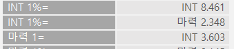 제 스펙상 인트1%당 마력은 2.35정도이며 마력1당 인트 3.6정도네요. 즉 마력10이면 인트 40이 아닌 36정도라는 이야기입니다. 따라서 제 경우 마력20인 아이템보다 인트8% 아이템의 효율이 좋겠네요. 또한 인트1%당 인트10이 아닌, 약 8.5이기 때문에 추가옵션을 볼 때 올스텟5%인 아이템보다 인트50 깡으로 붙어있는 아이템이 더 좋은 효율을 보여준다고 할 수 있습니다.