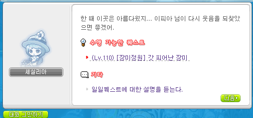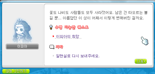 다시 세실리아에게 가서 이피아 아이템중 하나를 보상으로 받으면 끝입니다!