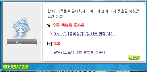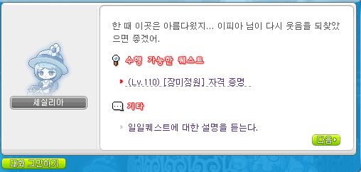 다시 세실리아에게 가서 이피아 아이템중 하나를 보상으로 받으면 끝입니다!
