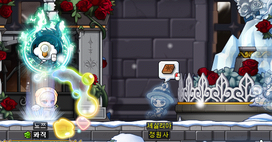 프로즌 로즈를 처리하면 장미 씨앗을 얻을 수 있는데, 이 장미 씨앗을 먹은 뒤, 비어있는 화단(클릭 써져있는 곳)을 클릭하시면 잠시 후 장미를 얻을 수 있습니다. 같은 방법으로 5번 반복해주신 후 세실리아에게 가서 퀘스트를 완료해 줍니다.