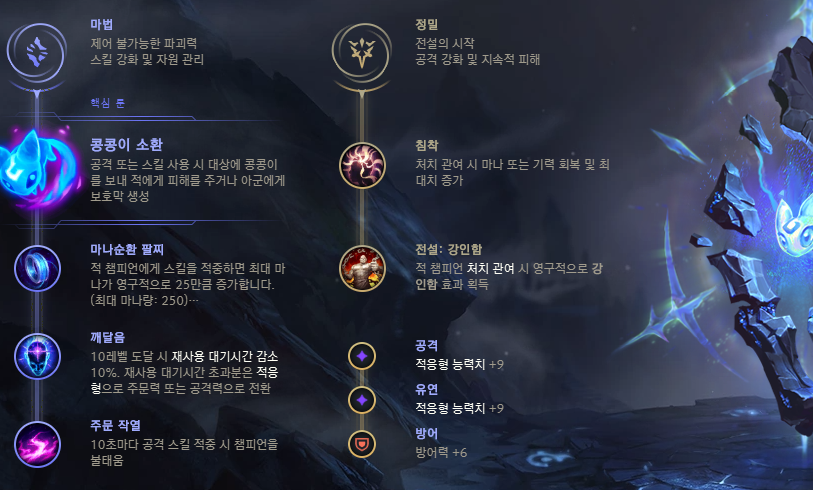 위의 룬에서 보조를 결의 대신 정밀을 찍어줄 수도 있습니다.