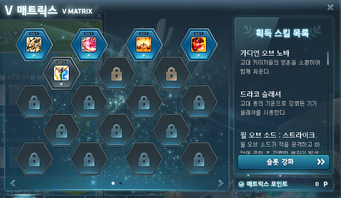 메이플 카이저 코강 스킬코어는 보스전을 위주로 키우실 분들은 (저처럼 카루타돌이용 카이저 육성을 하는 경우) 드라코 슬래셔를, 사냥을 위주로 하실 분들이라면 (대부분 카이저를 본캐로 키우실 분들) 가디언 오브 노바를 추천해드립니다. 가디언 오브 노바를 먼저 찍게 된다면 사냥능력에서 상당히 좋아지기 때문에 추천해드립니다.