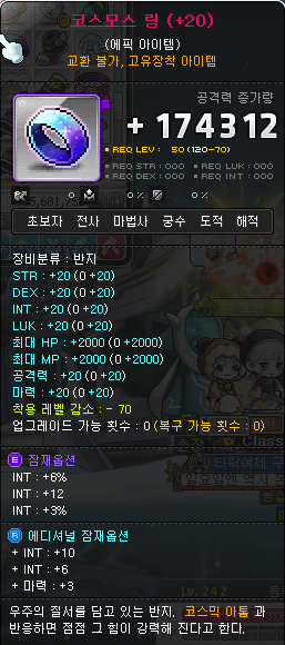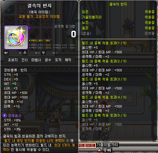 무자본 중자본 할것 없이 모두 사용하는 가성비 좋은 반지 아이템이 바로 이벤트 링 입니다. 이벤트 링은 종류도 굉장히 다양하고 효과도 다양한데, 그중 비슷한 반지류가 굉장히 많아요. 예를들면 벤전스링, 코스모스링 같은 경우 이름만 다르고 옵션은 정확히 일치합니다.