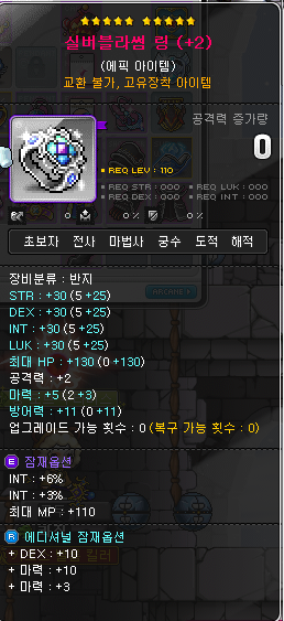 이럴경우, 보스 장신구 세트 효과가 필요없기 때문에 17성 이상의 마이스터 링이나 다른 레전드 반지를 사용하기도 합니다. (실버블라썸, 고귀한 이피아의 반지와 다르게 위 반지들은 교환이 가능함. ) 하지만 오른쪽 반지 아이템의 경우 기본옵션이 별로 좋지 않아서, 이벤트 링을 추천해드리고 싶네요. 하지만 이벤트 링 또한 회수가 불가능하다는 단점이 있습니다.