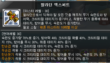 보통 1레벨 혹은 2레벨을 사용하게 되는데, 얼티팔라를 하실 거라면 가성비 좋은 1레벨을 추천해드립니다. 그 이유는 팔라딘의 극딜기인 그랜드크로스가 1레벨만 사용해도 서버렉때문에 충분히 풀딜을 넣을 수 있기 때문이에요.