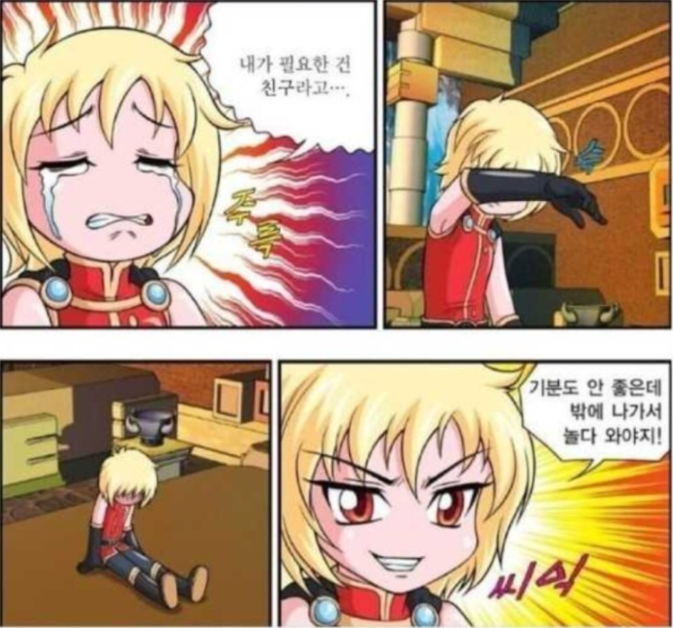 은근 감정기복이 있어서 갑자기 우울해졌다가도 갑자기 해맑아지기도 하고, 안좋은 일이 생기면 그 직후에는 해맑은 척 하지만 그 후로 좌절하기도 합니다.