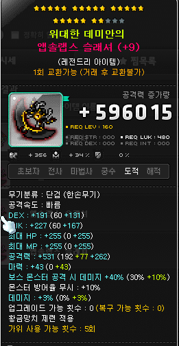 같은 무기인 단검을 놓고 비교했을 때, 그냥 공격력은 앱솔랩스 22성보다 높습니다.