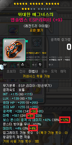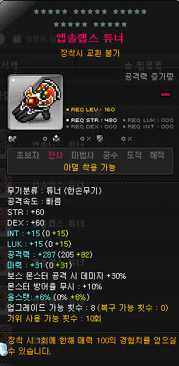 메이플 스토리 앱솔랩스 장비 아이템 추옵 정리